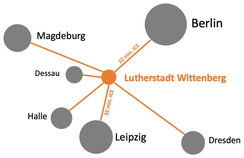 Wittenberg liegt wirklich zentral. Berlin und Leipzig erreicht