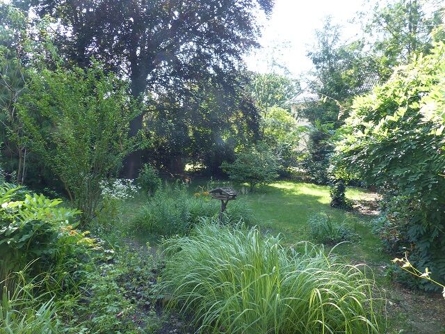 Die Gartenräume bestehen aus dem Atelier (ca. 34 qm), der mit dem Wintergarten (gut 11 qm) verbunden ist, von dem es auf die Terrasse (ca. 36 qm) und in den Garten (ca. 800 qm) geht. Kaminzimmer (gut 17 qm), Küche mit zweiter kleiner Terrasse und Bad schließen direkt an, die zweite Toilette und die Lounge befinden sich wenige Schritte über den Flur auf der anderen Seite des Hauses.